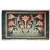 Note: In 1875, Morris & Co. began large-scale production of floor coverings, rugs and carpets, designed to complement an ever-popular ‘Morris’ aesthetic in Victorian Britain. A triumph in craftsmanship on an impressive scale, these designs were hailed as some of the finest hand-knotted carpets ever produced in Britain at the time. Morris’ designs were largely inspired by his love of Eastern carpets from Persia Turkey and China, of which he amassed a great deal and used to furnish his own homes, including Red House. Featuring an array of stylised plants and flowers, carefully woven into fields of vibrant colours, the carpets were hugely popular but very expensive to the average customer. As a result, the firm began to manufacture a range of smaller and less costly alternatives to an eager market. Flowerpots were often a feature of these designs, with trailing flowers stemming out from the centre against a cream ground, and a dark blue border. These smaller rugs were frequently used as wall hangings and occasionally placed as bedside rugs in guest bedrooms.