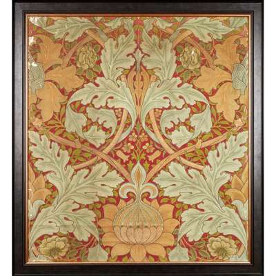 Note: Morris & Co. only undertook two public commissions, and this rare repeat fragment of wallpaper comes from one of them - St James’s Palace, London. It was removed during a renovation. The other commission was for the South Kensington Museum. The two are possibly connected “through the influence of Richard Redgrave, who was both on the staff at South Kensington and, in his capacity as Surveyor of the Queen’s Pictures, was reorganising the paintings at St. James’ from 1864 onwards.”