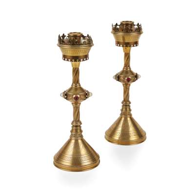 PAIR OF GOTHIC REVIVAL CANDLESTICKS, CIRCA 1870