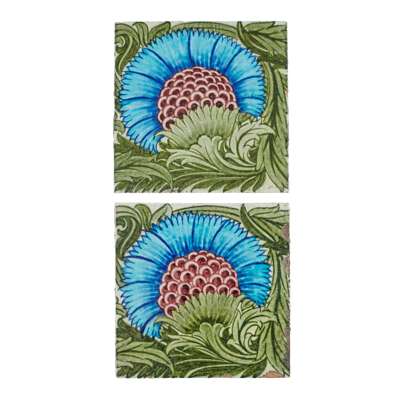 PAIR OF 8 INCH DOUBLE CARNATION TILES, LATE 1890s