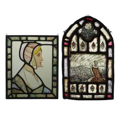 PAIR OF ARTS & CRAFTS STAINED GLASS ROUNDELS, CIRCA 1900
