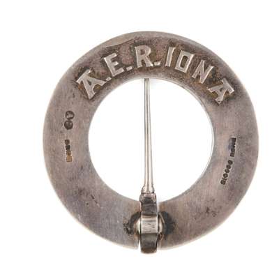 silver, bears inscription A.E.R. IONA; stamped AR, hallmarks for Glasgow 1922/ registration number 689616