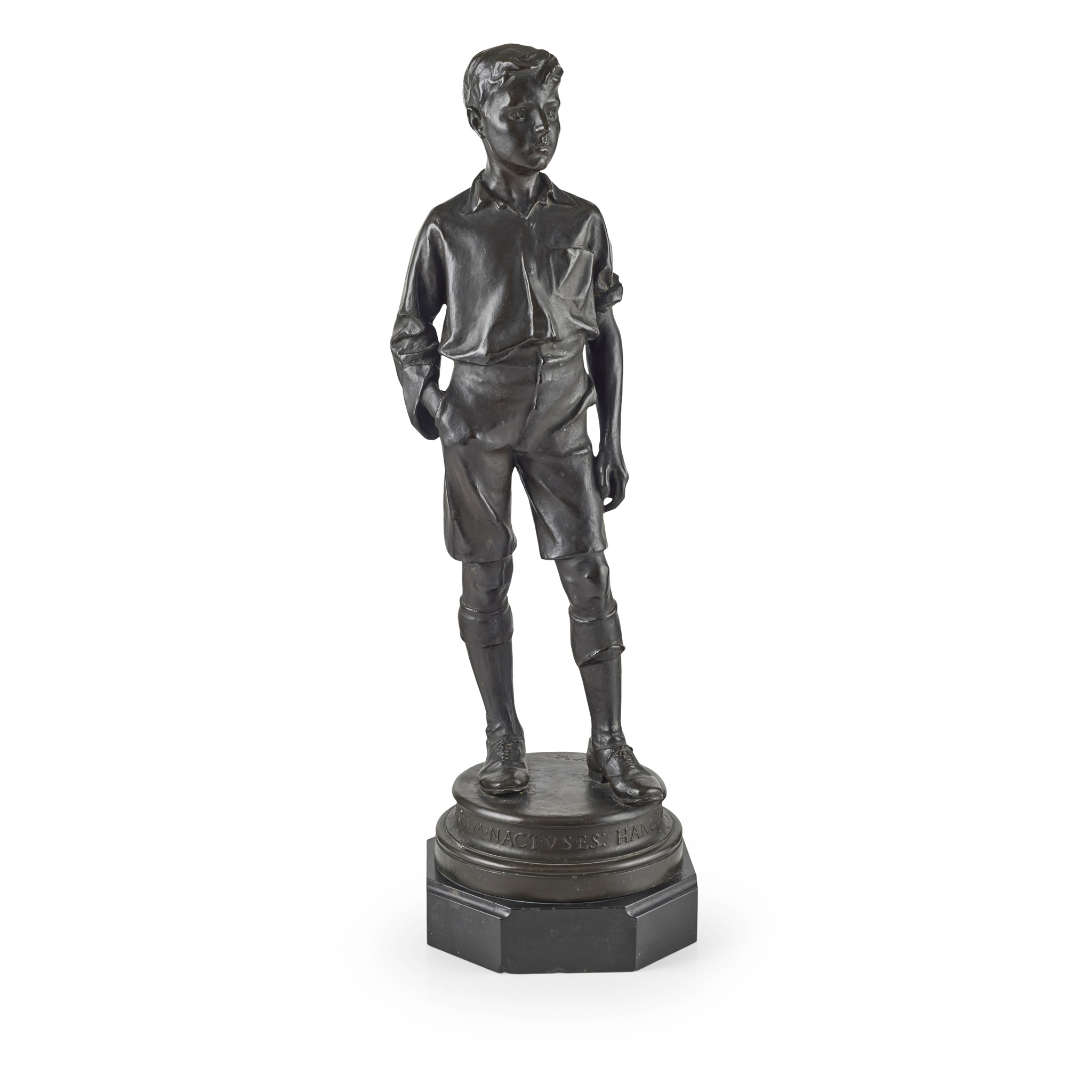 bronze, raised on a slate plinth with brass fixture to rotate the figure, inscribed in the bronze SPARTA.NACTVS.ES.HANC.EXORNA, signed in the bronze D'O. PILKINGTON JACKSON/ 1909