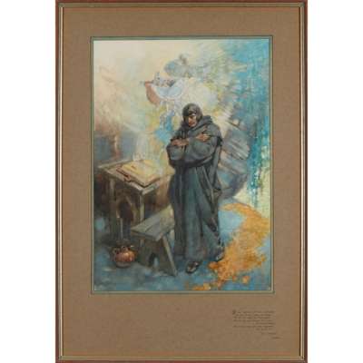pencil, watercolour and gouache, signed lower left T. PEDDIE/ 27, the mount with printed excerpt from 'The Hermit' by Robert Burns