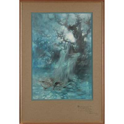 pencil, watercolour and gouache, signed lower left T. PEDDIE/ 27, the mount with printed excerpt from 'Address to the Deil' by Robert Burns