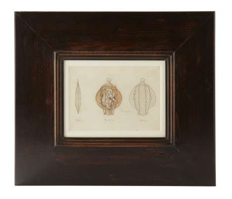 pencil and watercolour, inscribed in pencil ENAMEL -/ SIDE-/ FRONT-/ BACK-