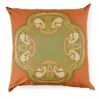 LARGE EMBROIDERED CUSHION, THE MATERIAL CIRCA 1900