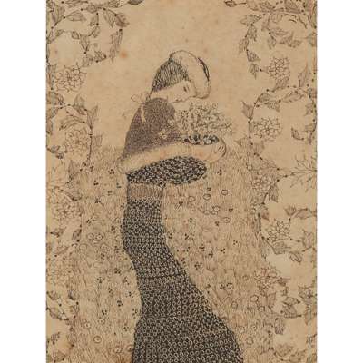 pen and ink on paper, signed upper right ANNIE FRENCH
