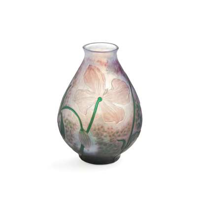 glass, overlaid, acid-etched, with martelé, engraved and gilt DAUM/ NANCY, with Cross of Lorraine