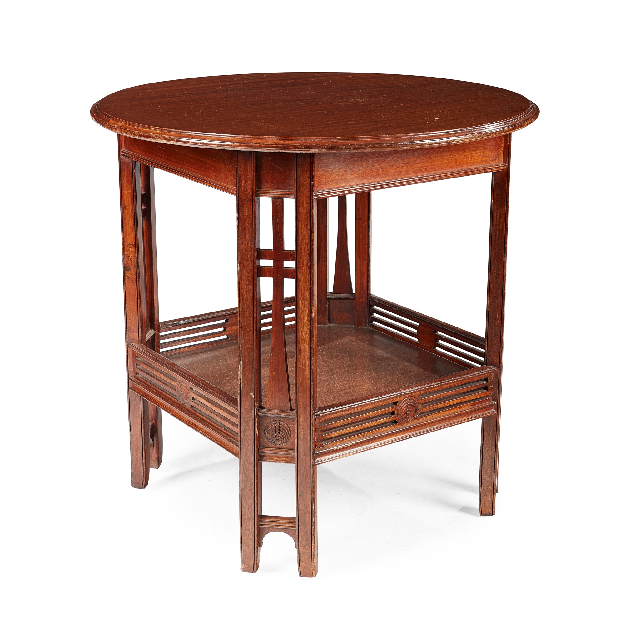 mahogany, 74.5cm diameter, 72cm high; together with an AESTHETIC MOVEMENT JARDINIERE STAND, mahogany, 29cm diameter, 91cm high; and an ARTS & CRAFTS OCTAGONAL JARDINIÈRE STAND, oak, 33.5cm wide, 68cm high