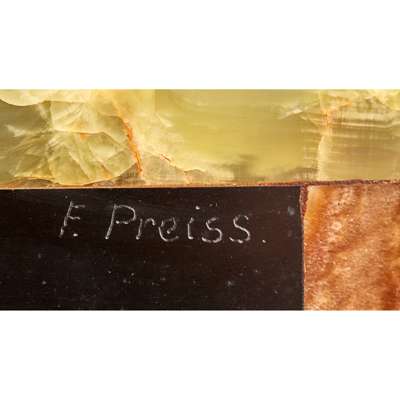 cold painted bronze, carved and painted ivory, onyx, inscribed F. PREISS, impressed to bronze PK