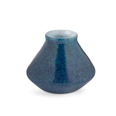 milky off-white glass interior, surface decorated in blue/green