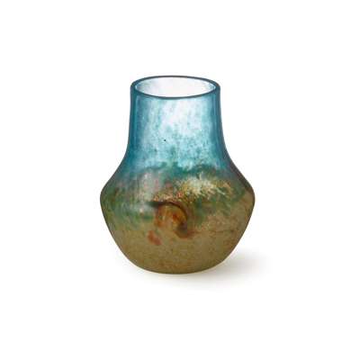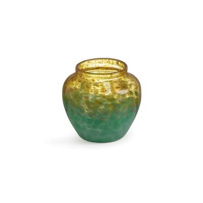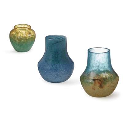 mottled blue and yellow glass with aventurine inclusions, 18.5cm high; a further 'MONART' VASE, mottled blue and green glass, 18.5cm high; and a SMALL 'MONART' VASE, green glass with aventurine inclusions, 11cm high