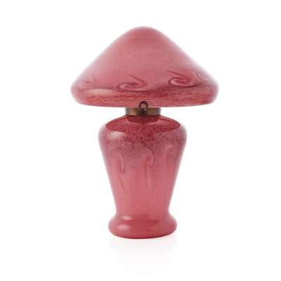 mottled pink glass, 35.5cm high; together with a ‘VASART’ GLASS LAMP BASE, CIRCA 1950, mottled white, orange and yellow glass, 21cm high (excluding fittings) and another 'VASART' LAMP BASE, mottled orange and green glass, traces of maker's paper label, 22.5cm high (excluding fittings)