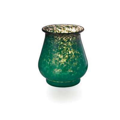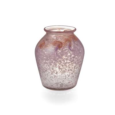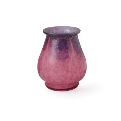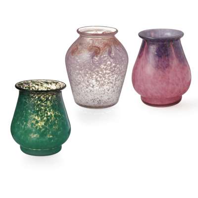 cased glass in pink and purple with aventurine inclusions, 21cm high; together with a further 'MONART' VASE, green glass with aventurine inclusions, 20.5cm high; and another 'MONART' VASE, clear and lilac glass, with maker's label to base, 22.5cm high