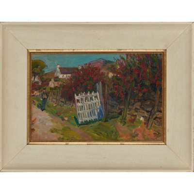 oil on board, unsigned, bears label verso inscribed THE ROAD UP THE HILL/ £15-15-0/ JOHN KEPPIE A.R.S.A./ 257 WEST GEORGE STREET/ GLASGOW.