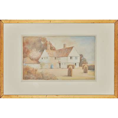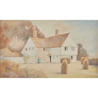 pencil and watercolour, signed and dated lower right BAILLIE SCOTT/ 1935, bears label verso inscribed BAILLIE SCOTT & BERESFORD FRIBA/ 12 SOUTH SQUARE GRAY'S INN W.C.1/ HOUSE AT WENDENS AMBO/ ESSEX/ FOR ***