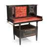 ebonised oak, glazed earthenware tiles, leaded glass panels, copper fittings, bears ivorine label LIBERTY & CO./ LONDON