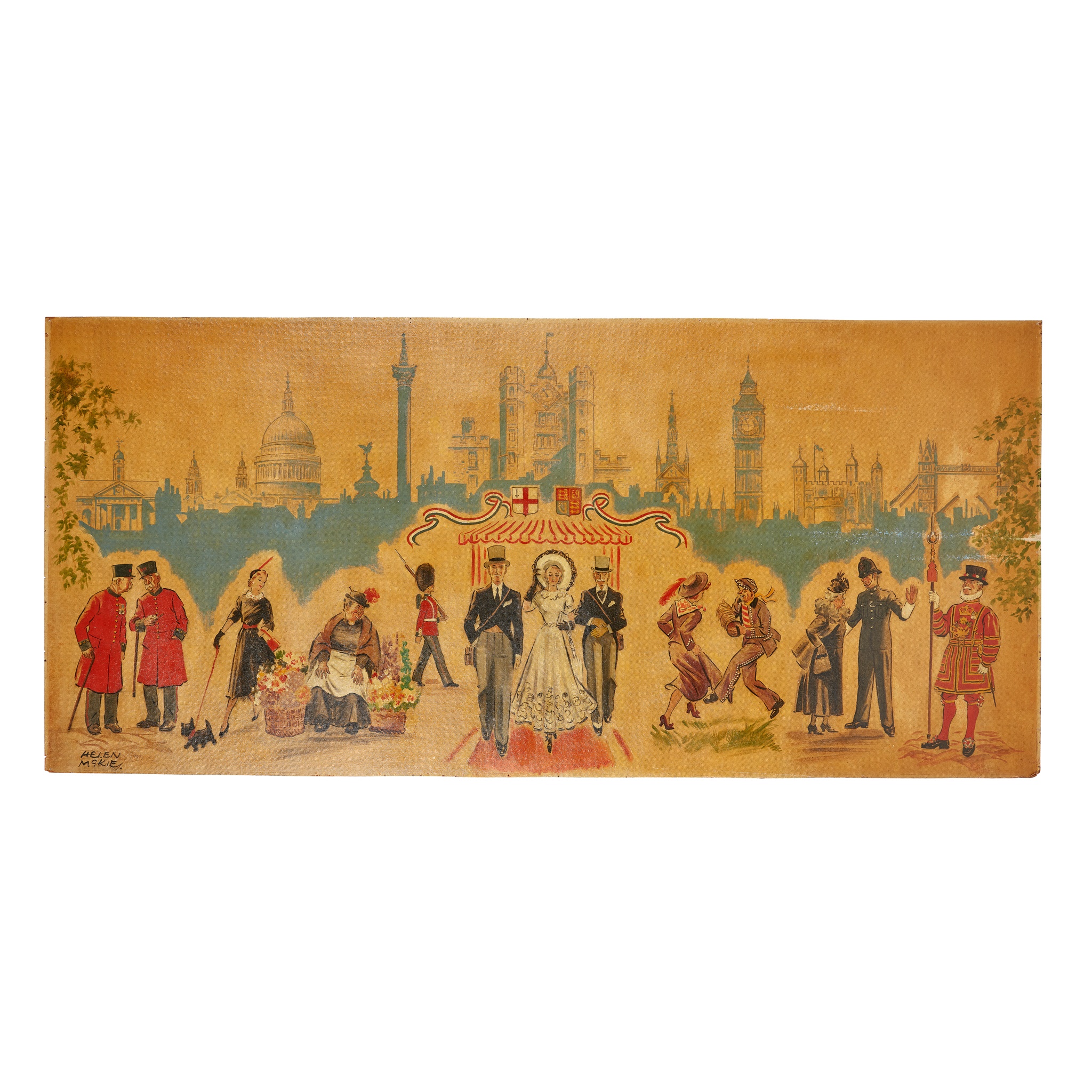 Note: Helen McKie was born in London and attended Lambeth School of Art where she studied composition and painting under Philip Connard. She became an illustrator and permanent member of staff to 'Bystander' magazine from 1915-1929 and was a contributing artist to The Graphic, Sphere, Autocar, and Queen publications. In 1919 she exhibited at Brock Street Art Gallery, and in 1928 at Walkers Galleries, where Queen Mary purchased a picture. She also exhibited at the Paris Salon from 1934-1936 and at the Royal Hibernian Academy in 1936. Mural designs were designed and painted by McKie for amongst others; the Ritz Hotel in London, several Butlins holiday camps including a Bahamas resort, Ford motorcars, the French Government Tourist Office, and Selfridges. This painting was commissioned by the late Grace Laporte and her husband possibly for the walls of her hairdressing salon in Duke Street, St James’s, London.