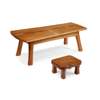 pine and specimen wood inlay, 110cm long, 38cm high, 51cm deep; together with a LOW STOOL, pine, 31cm wide, 17cm high, 25cm deep