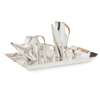 silver plated, comprising a COFFEE POT, 21.5cm high; a TEAPOT, 13.5cm high; a MILK JUG, 11.5cm high; and a SUGAR BOWL, 7.5cm high; with a SERVING TRAY, 49.5cm across, each marked GALLIA and the teapot, milk jug and sugar bowl marked PROD. CHRISTOFLE