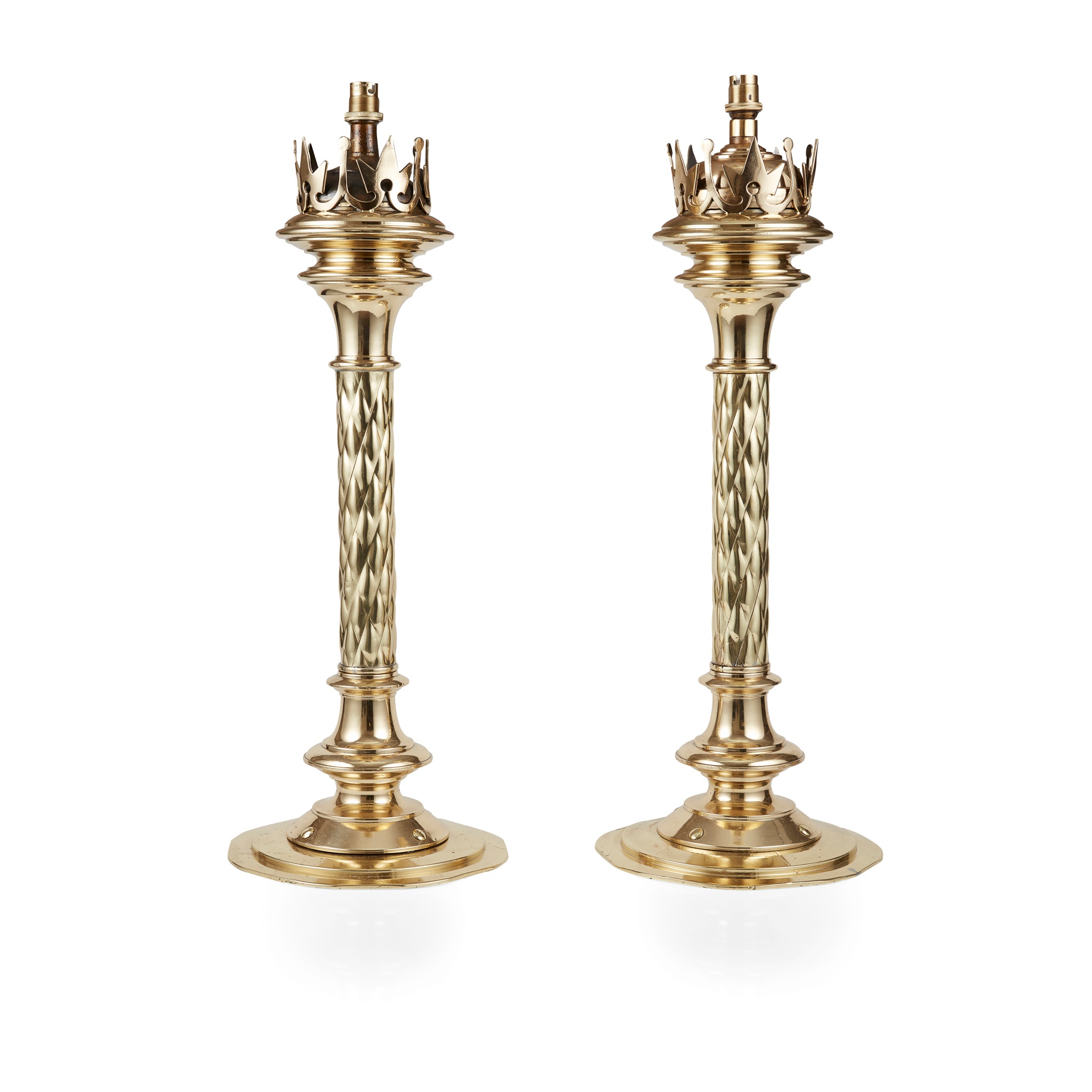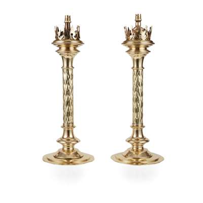 PAIR OF GOTHIC REVIVAL NEWEL CANDLESTICKS, CIRCA 1890