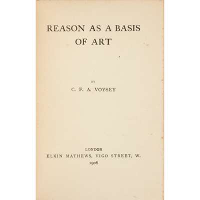 Note: Voysey published only one book, Individuality (1915), and a pamphlet, Reason as a Basis of Art (1906), both offered here in subsequent lots.