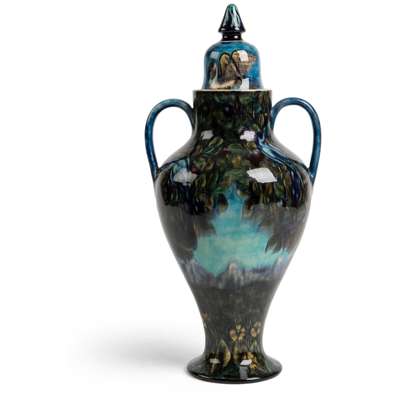 PERSIAN TWIN-HANDLED VASE & COVER,
