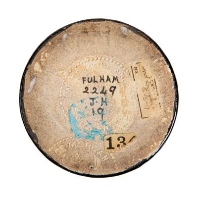 glazed pottery, impressed W DE MORGAN POTTERY SANDS END, black painted FULHAM 2249 J.H 19