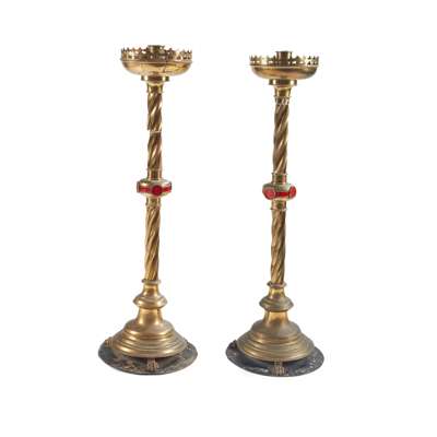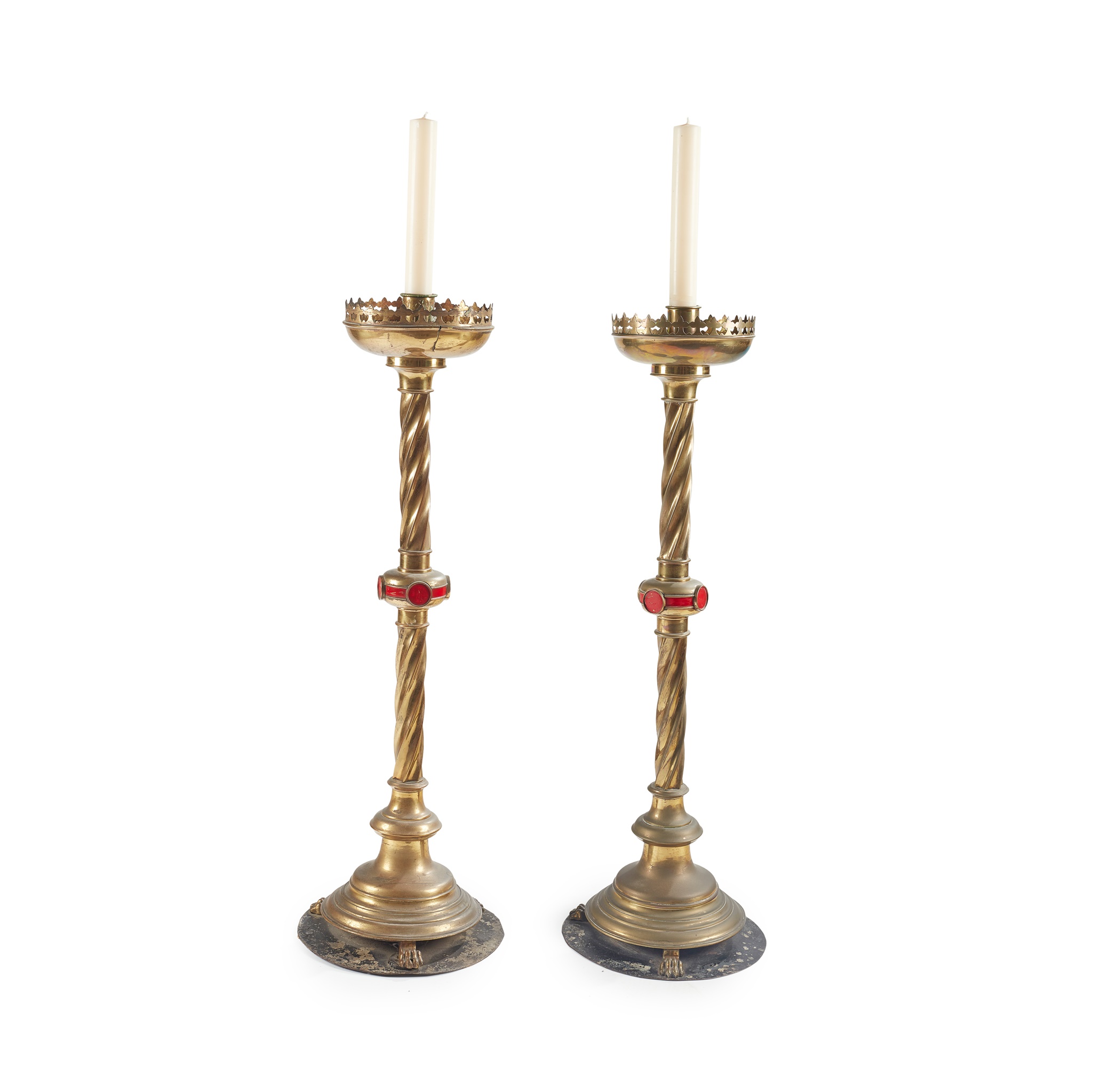 PAIR OF GOTHIC REVIVAL ALTAR CANDLESTICKS, CIRCA 1870