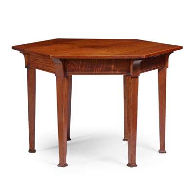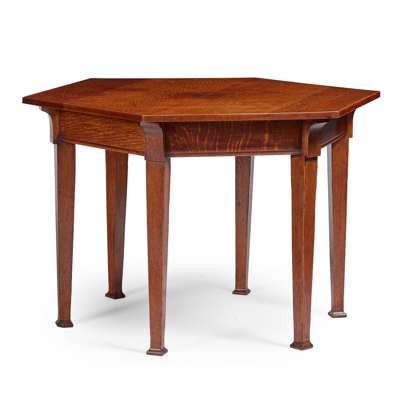 ARTS & CRAFTS HEXAGONAL LIBRARY TABLE, CIRCA 1900