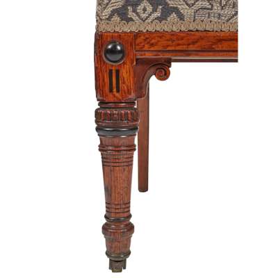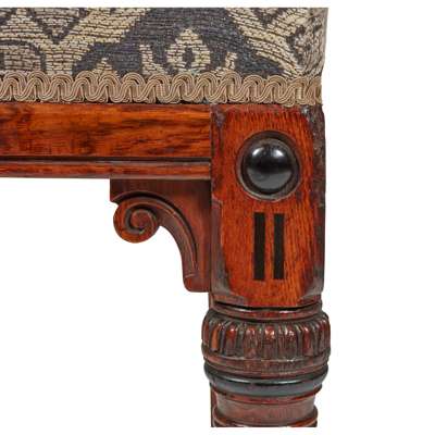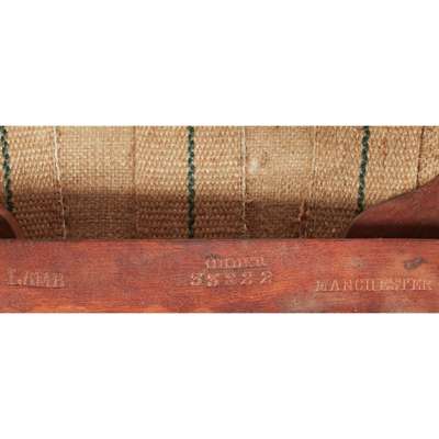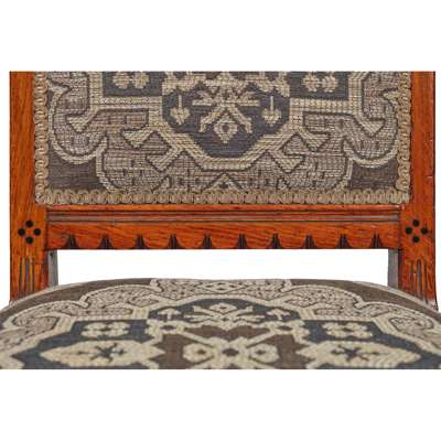 inlaid oak with later upholstery, stamped LAMB MANCHESTER/ ORDER 33822
