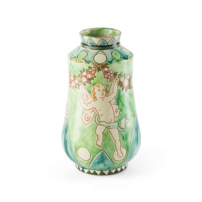 glazed terracotta, incised pottery marks and AJP monogram, green painted initials LW/ 1899/ 64