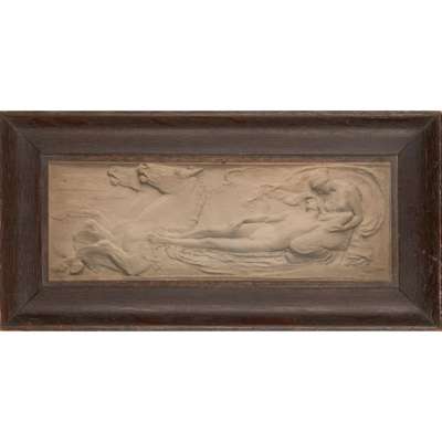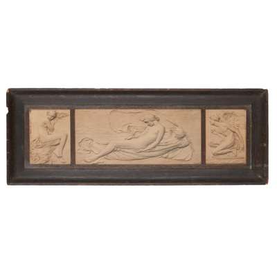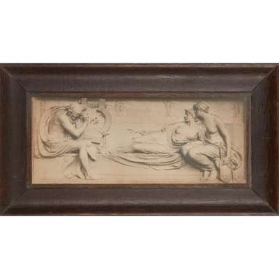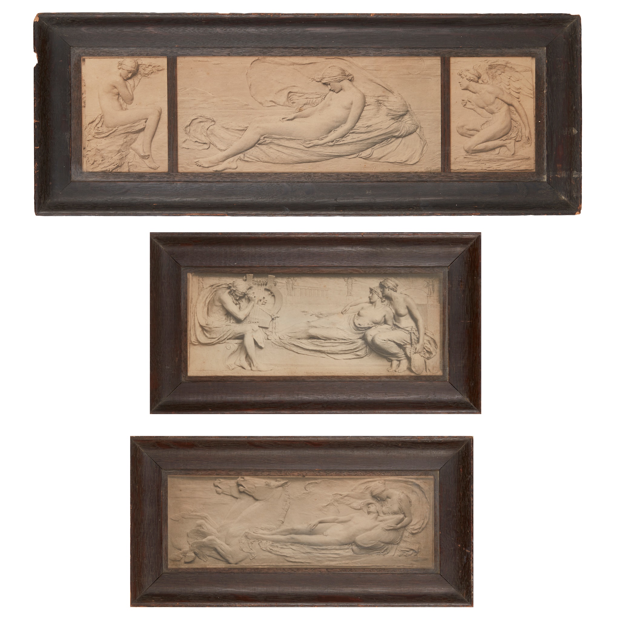 each depicting works by HARRY BATES (1850-1899), comprising THE STORY OF PSYCHE, triptych, framed, 15.5cm x 58.5cm; HOMER — "A BLIND OLD MAN AND POOR, SWEETEST HE SINGS", 13.5cm x 34cm; and ENDYMION CONVEYED IN SLEEP TO MOUNT LATMOS, 13.5cm x 34cm