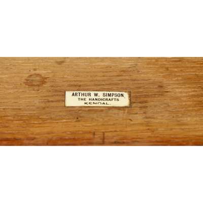 oak, with Rathbone bronze handle, bears label to interior ARTHUR W. SIMPSON / THE HANDICRAFTS/ KENDAL