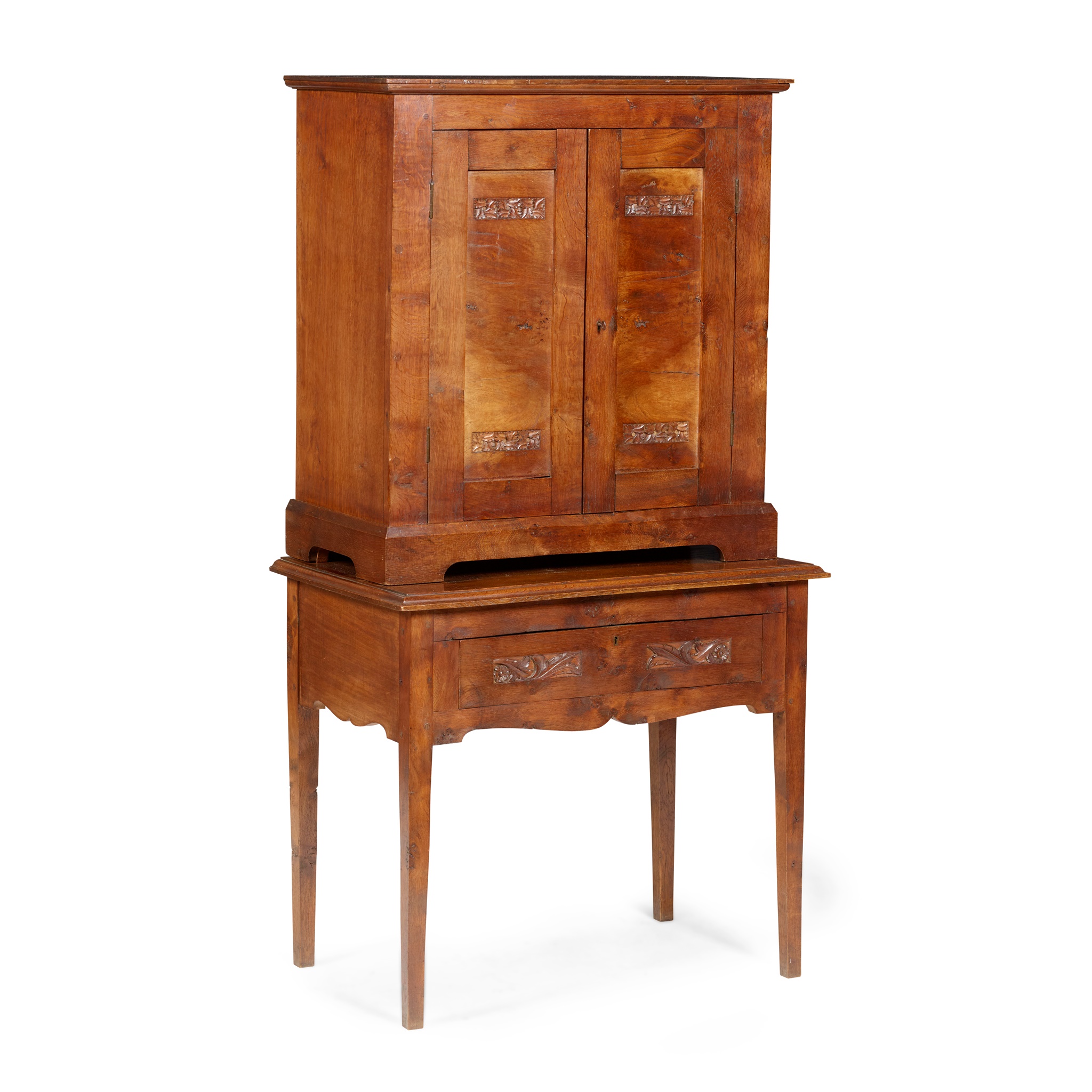 ARTS & CRAFTS TWO-DOOR CABINET ON STAND, CIRCA 1900