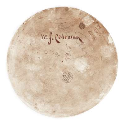 painted pottery, impressed MINTON, printed factory stamp, painted initials WSC and painted signature W. S. COLEMAN verso