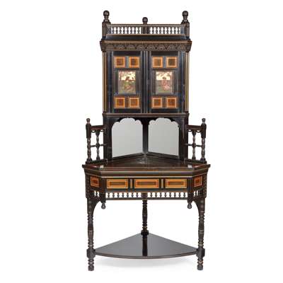 AESTHETIC MOVEMENT CORNER CABINET, CIRCA 1878