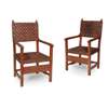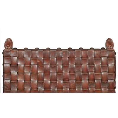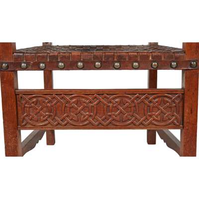 oak, with close-nailed woven leather upholstery
