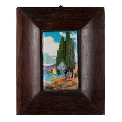 enamel on copper, framed