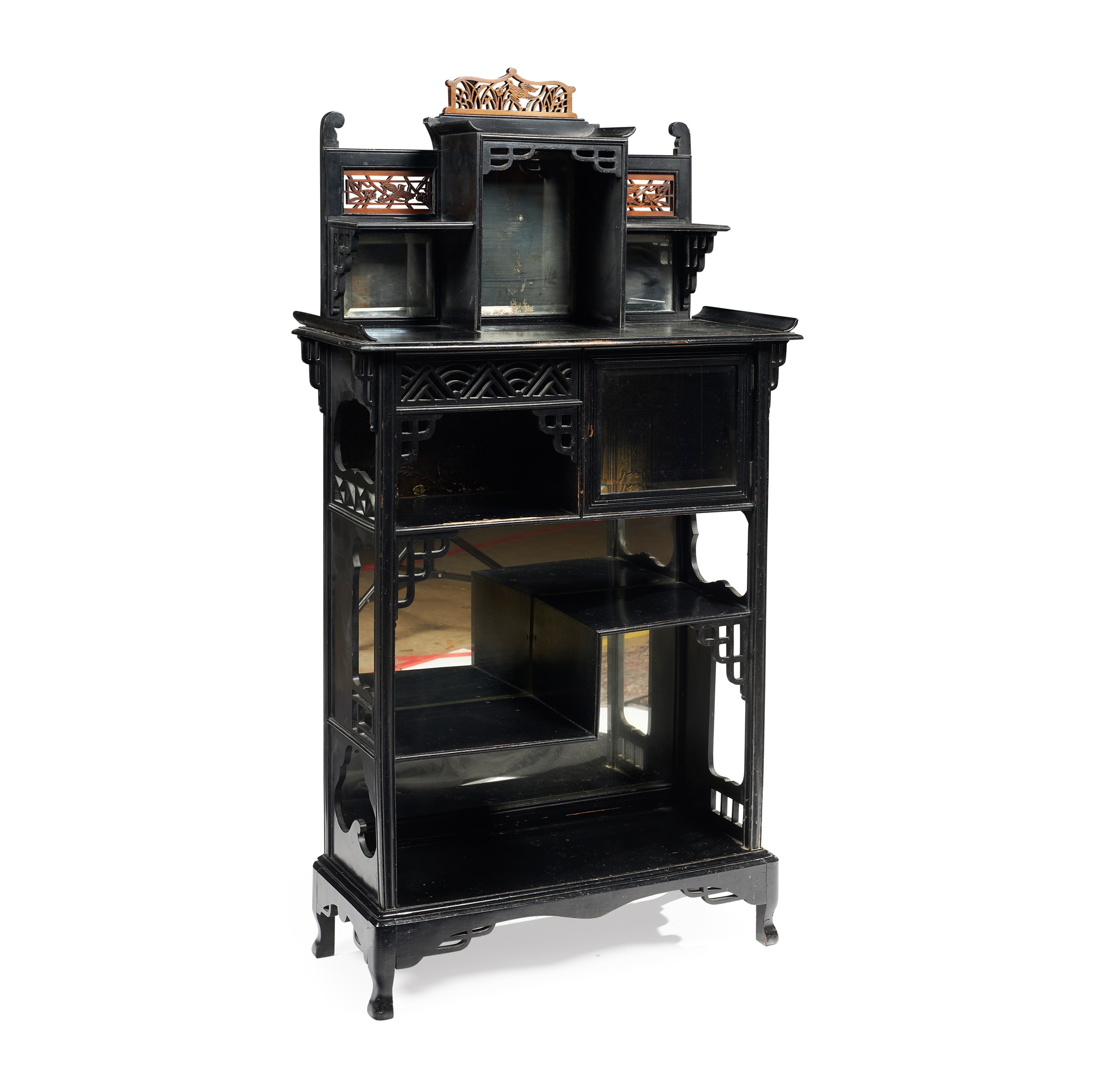 ebonised wood, boxwood, embossed paper and mirrored glass