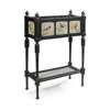 ebonised wood, set with eight tiles, with removable tin liner
