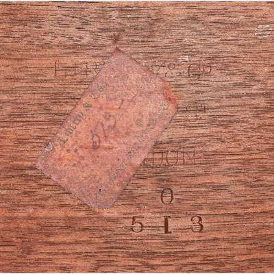 walnut, stamped to base LIBERTY & CO/ REGENT ST/ LONDON/ 0/513, with original paper label