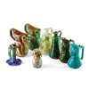 glazed ceramic, to include TWO VULLIAMY WARE CHARACTER JUGS, each incised VULLIAMY REGD, 20.5cm high; TWO SIMILAR VULLIAMY WARE JUGS, each incised VULLIAMY, 21cm high; a VULLIAMY WARE CANDLESTICK, incised VULLIAMY REG. NO. 333615, 13.5cm high; a VULLIAMY OWL JUG, incised VULLIAMY 326053, 12.5cm high; and TWO SIMILAR WARDLE JUGS, each impressed WARDLE ENGLAND 2153, 18cm and 18cm high