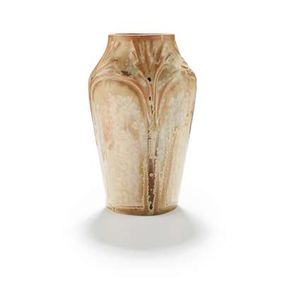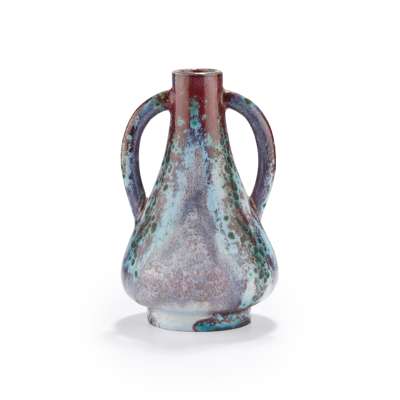 glazed earthenware, impressed T DECK, 17.8cm long; together with a TWIN-HANDLED VASE, glazed earthenware, 15cm high; and a further SMALL VASE, impressed signature (indistinct), 12.5cm high