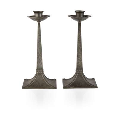 PAIR OF ARTS & CRAFTS CANDLESTICKS, CIRCA 1908