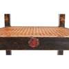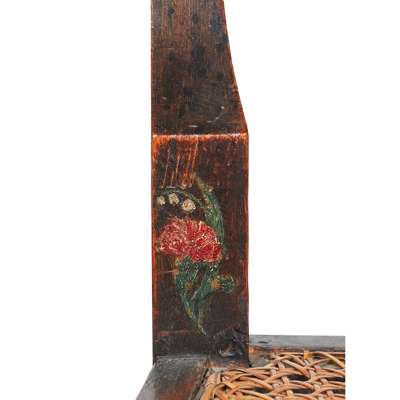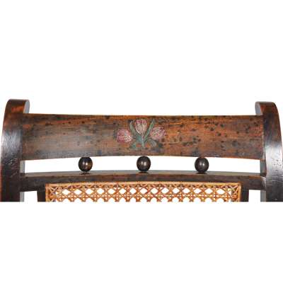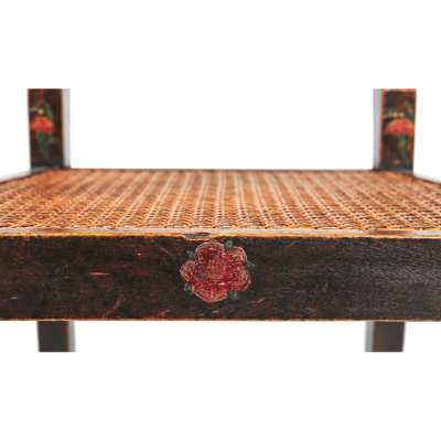 ebonised beech with polychrome painted decoration, caned seat and back panels