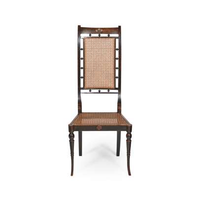 RARE EBONISED AND PAINTED BEECH DINING CHAIR, CIRCA 1896