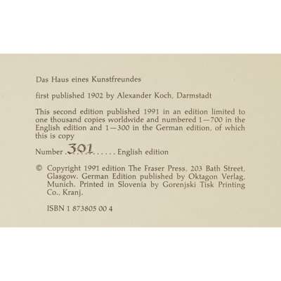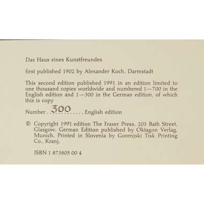 facsimile edition, Architectural Heritage Prints, 1990, numbered 300 and 301 of 700 copies in the English Edition