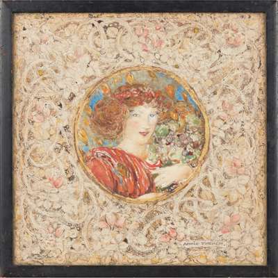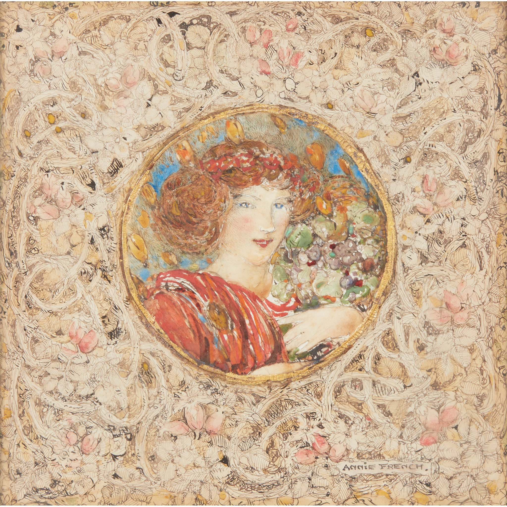 graphite, pen, ink and watercolour with gilded highlights, signed lower right ANNIE FRENCH, bears artist’s label verso
